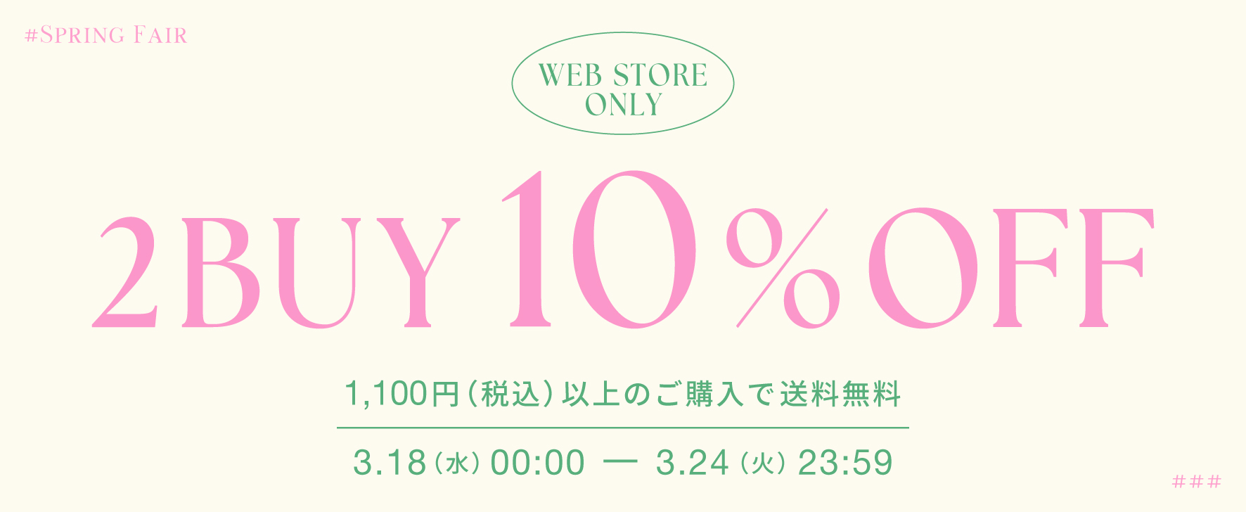 3/18(水)~3/24(火)の7日間、対象のWEB STOREにて対象商品を2点以上ご購入で10%OFFに!